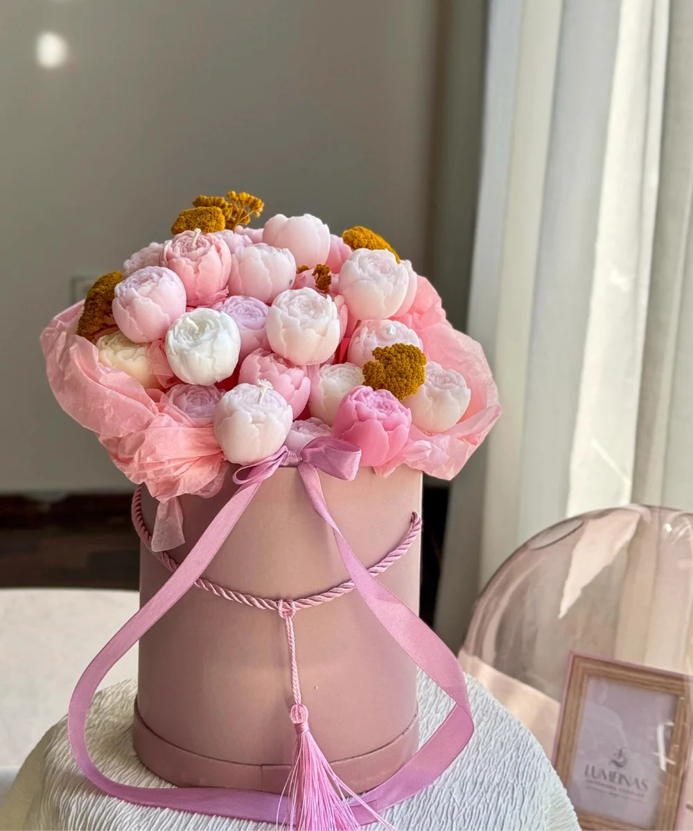At Lumeinas, we wanted to create something more than just a candle: a candle gift box that feels personal, thoughtful, and timeless. Inside, you’ll find hand-crafted wax blooms — including delicate daisies, romantic peonies, and other wax flowers — all made from eco-friendly soy wax, perfect for anyone looking for vegan candles that combine beauty with sustainability.