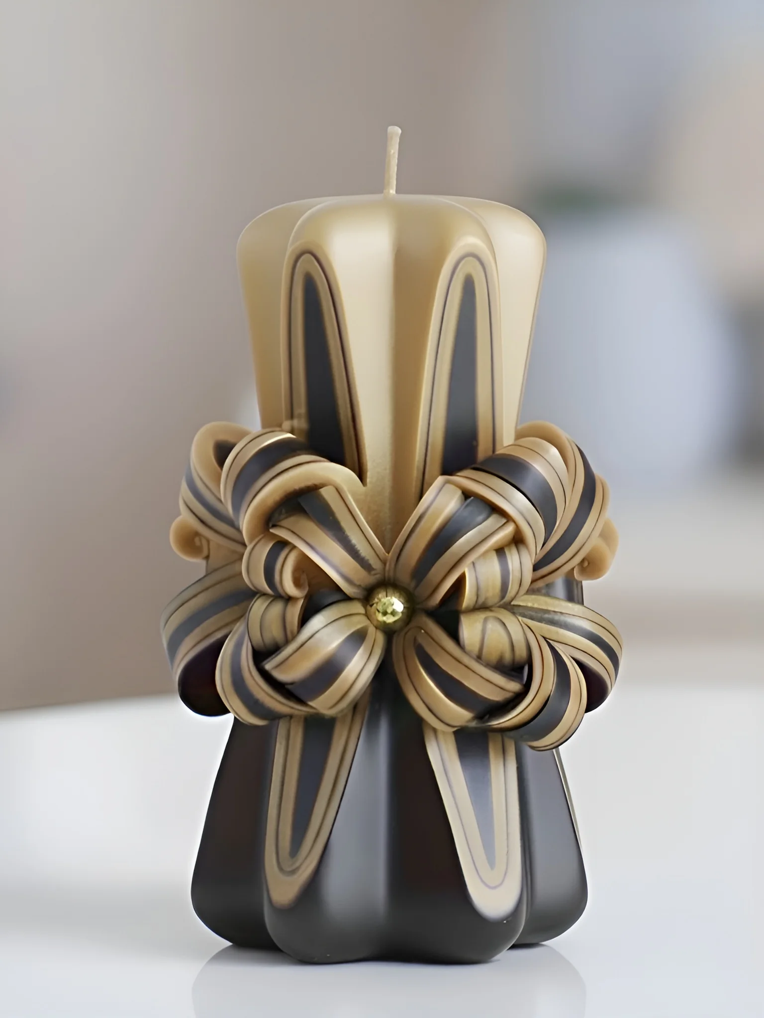 Hand-Carved Decorative Candle with Gold Dipped Finish