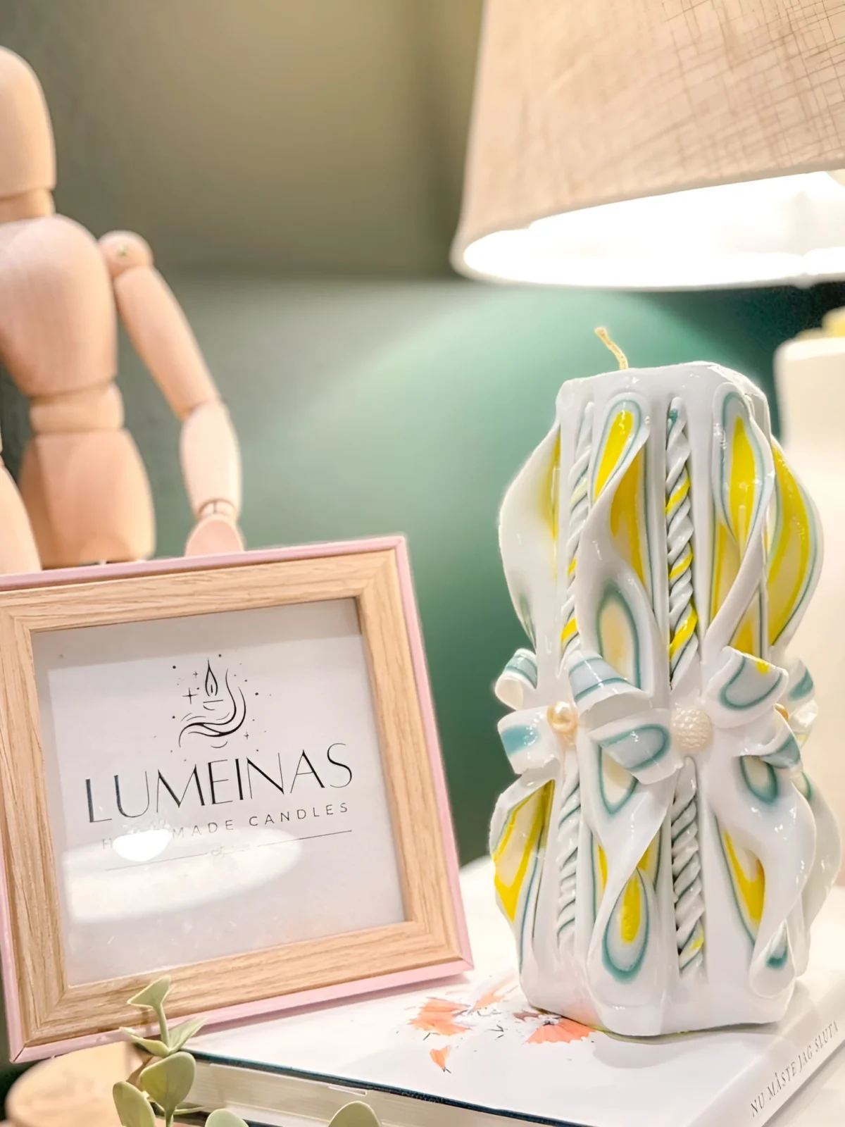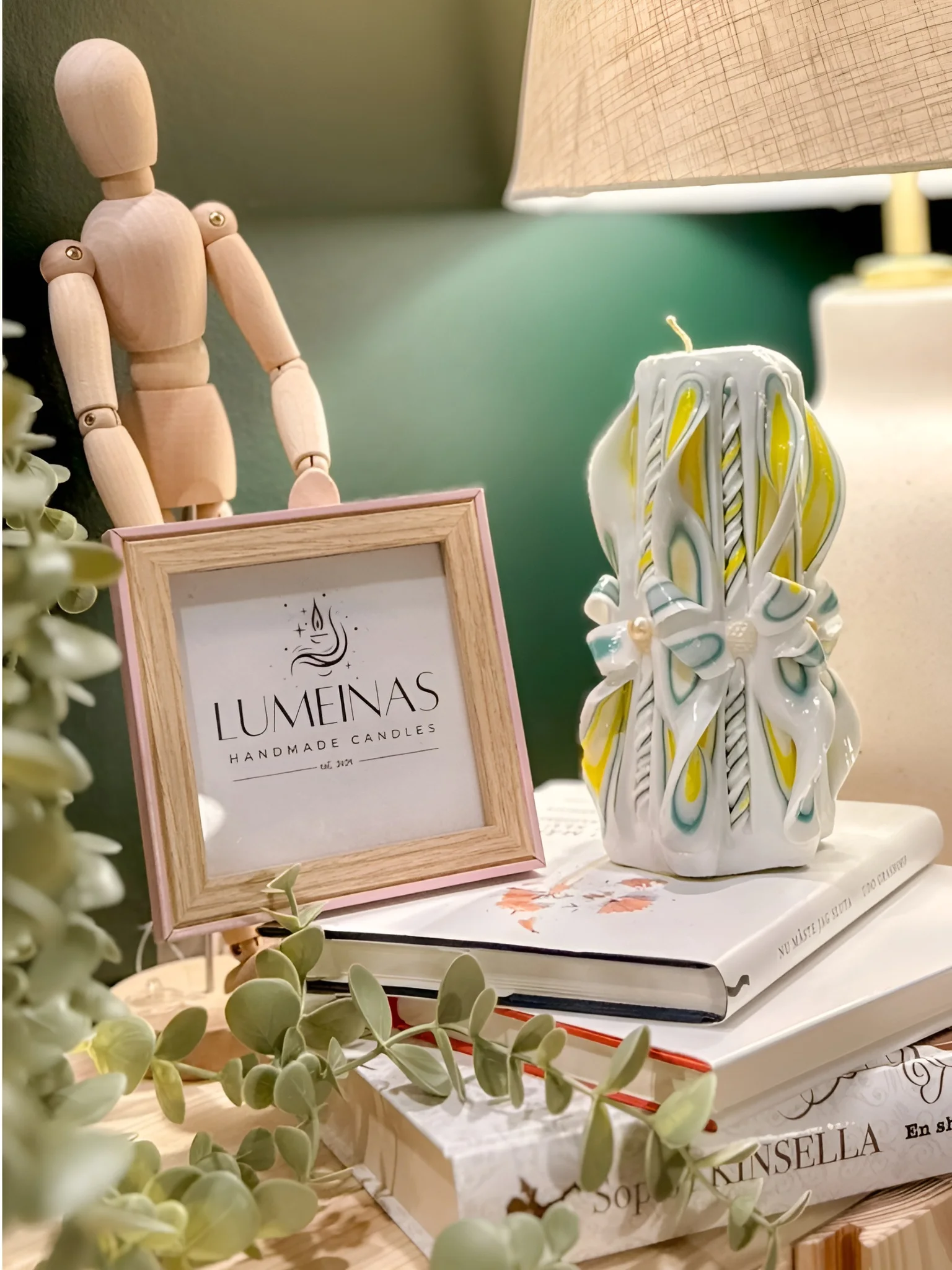 Handcrafting candles is an art that requires patience, skill, and dedication—especially when carving intricate details by hand. Each of our unique Rose Candles is meticulously hand-carved using traditional tools, ensuring no two pieces are alike. The delicate petals are shaped with precision, capturing the natural beauty of a rose in every candle. This particular design features a striking blend of yellow, green, and white layers, creating a fresh and elegant look that adds a sophisticated touch to any room.